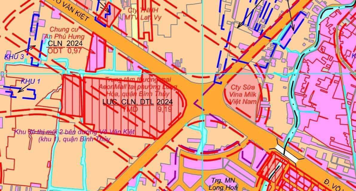 – Theo quyết định 3288/QĐ-UBND của UBND thành phố ngày 29/12/2023 phê duyệt kế hoạch sử dụng đất quận Bình Thuỷ năm 2024 dự án TTTM Aeon Mall Cần Thơ có diện tích 9.19 ha, nằm ngay góc đường Võ Văn Kiệt – đường nối CMT8-TL 918 đang xây dựng, thuộc danh mục công trình, dự án chuyển mục đích sử dụng đất thực hiện trong năm 2024 này.